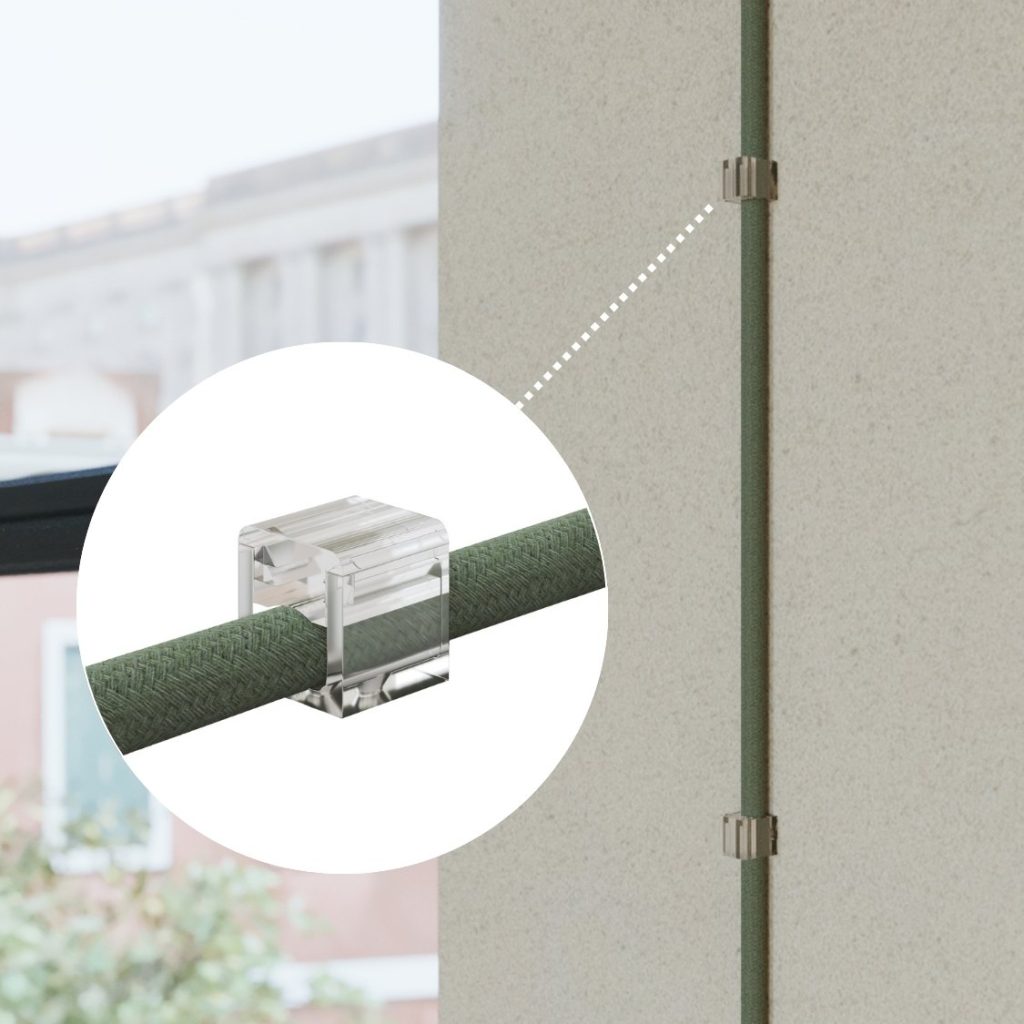 Kada je putanja kabela dio dizajna, potreban vam je diskretan nosač. Cube Clip je mini zidni držač za tekstilne kabele, posebno osmišljen za precizno vođenje tekstilnih električnih kabela duž zida. Njegov jednostavan dizajn i prozirni polikarbonat čine ga gotovo nevidljivim, ostavljajući boje, teksture i sam kabel u prvom planu.